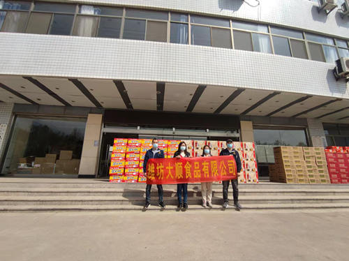 濰坊大順食品有限公司捐贈(zèng)防疫物資,疫情防控人員夜以繼日保障廣大人民群眾的健康,我司為防控人員提供幫助,送去溫暖,為疫情抗擊工作做出微弱貢獻(xiàn),守護(hù)我們共同的家園。濰坊大順食品有限公司是一家專業(yè)生產(chǎn)低溫油炸果蔬脆片的工廠,我們有60多種產(chǎn)品,有12年的生產(chǎn)經(jīng)驗(yàn)。產(chǎn)品出口日韓、歐美多個(gè)國(guó)家。